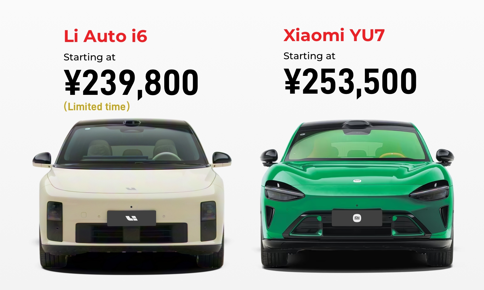 As a competitor to the Li Auto i6, the entry-level Xiaomi YU7, priced at 253,500 yuan, comes with a 96.3 kWh battery offering a range of 835 km and also supports 800V high-voltage fast charging.